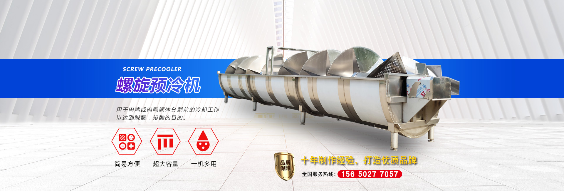 公司長期與國內外屠宰加工企業合作,走引進——消化——創新和自主研發相結合的道路,在國內外同類產品的基礎上,不斷更新和改造。公司主要設備有:A字型立式脫毛機、臥式脫毛機、強力噴淋機、松毛機、浸燙池、螺旋預冷機、禽籠清洗機、電暈機、兔扯皮機、兔割前爪/后爪機、剝胗機、自動洗鉤機、螺旋燙爪機、雞爪脫皮機、分割輸送帶等屠宰用設備。其中,公司獨力發明生產設計的“電動調節脫毛機”及“自動控水控溫浸燙池”順利通過知識產權局的實質性審查。公司所生產的設備 可與國外同類產品配套使用,設備遠銷阿爾及利亞、澳大利亞等中東、非州等并建立了長期穩定的合作關系。